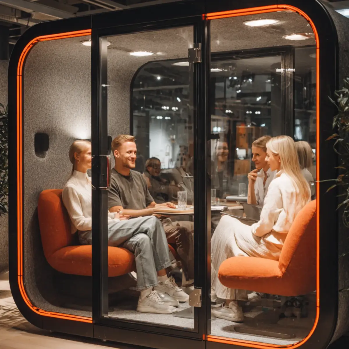 We specialize in creating modular soundproof booths that adapt to the evolving needs of modern workplaces. Our office pods are designed to provide a quiet, comfortable space for focused work, collaboration, or relaxation.